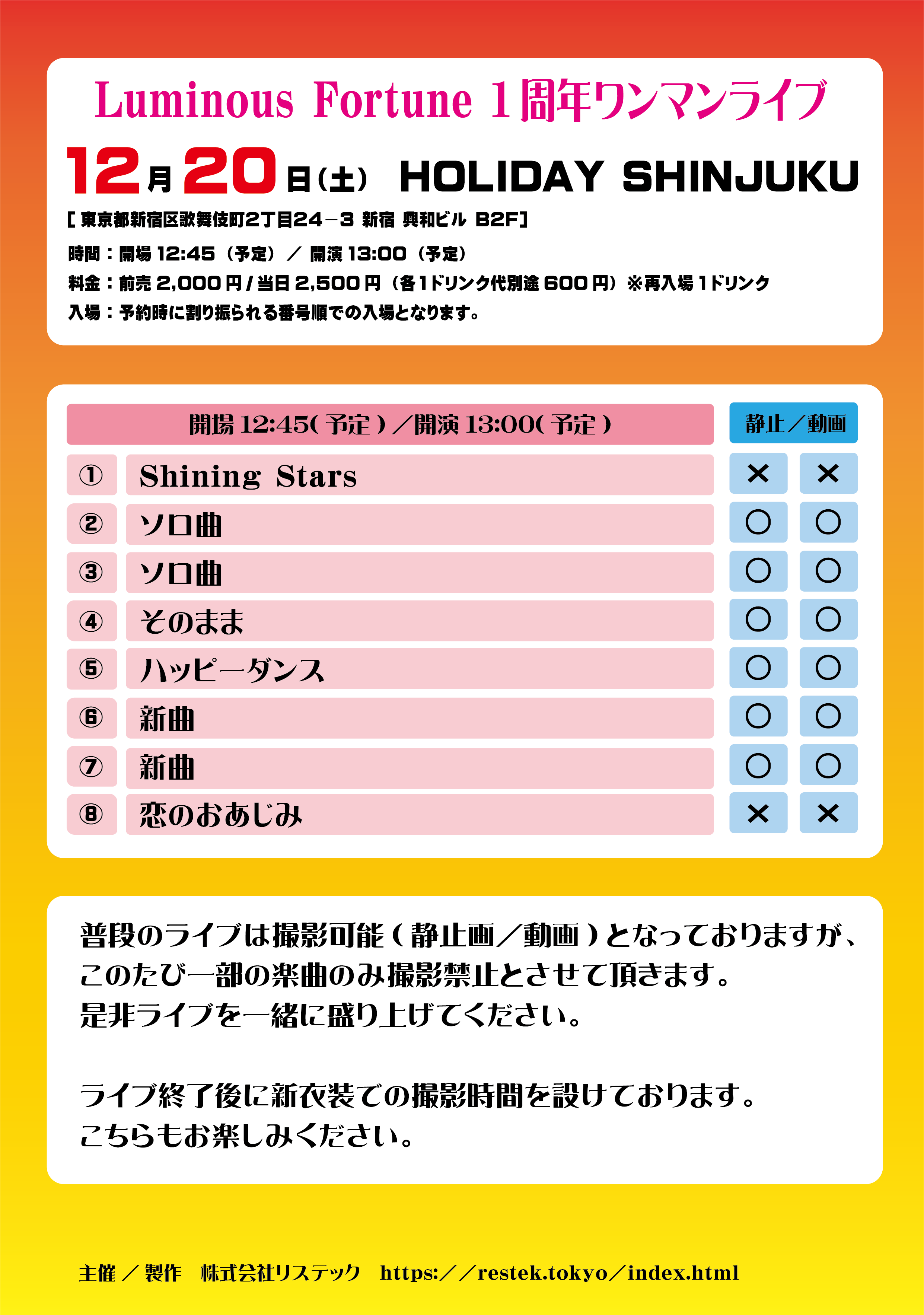 ・2025年12月20日(土)HOLIDAY SHINJUKU